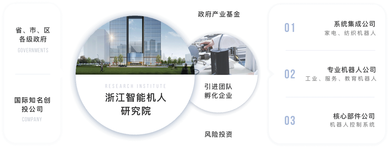 研究院依托浙江大學(xué)機(jī)器人研究中心和浙江省機(jī)器人產(chǎn)業(yè)發(fā)展協(xié)會(huì)合作的同時(shí),吸收金沙江聯(lián)合資本、之江實(shí)驗(yàn)室等多方位資源,并與聯(lián)盟成員單位及國(guó)內(nèi)外其他機(jī)器人研究機(jī)構(gòu)、知名機(jī)器人企業(yè)形成互補(bǔ)合作關(guān)系并取得多項(xiàng)成果,積極打造一個(gè)智能機(jī)器人產(chǎn)業(yè)技術(shù)平臺(tái)。